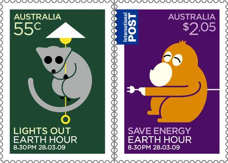 Australia Post has become the latest organisation to inappropriately involve itself in the climate change debate by releasing stamps to remind people about Earth Hour, which as you will recall is organised by the radical environmental organisation WWF (and Fairfax media):