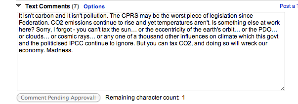 P.S. Post lots of negative comments, but don’t expect any of them to be published – they’re all censored… Here’s mine, for what it’s worth (note “Pending Approval” – ha ha):
