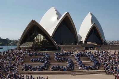 Thousands of people gathered on the steps of the Opera House for an outdoor concert and formed a giant 350 with their bodies, one of more than 200 events to be staged across the continent, said spokeswoman Blair Palese.