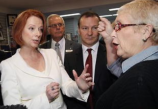 At least one voter got to tell Julia to her face what she thought, encapsulating the frustration many of us feel: