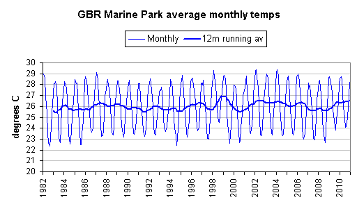 We’re often told that the sea temperature along the Great Barrier Reef (GBR) is increasing and that soon the coral will be bleached and the reef be destroyed. But what’s the real story according to the data?