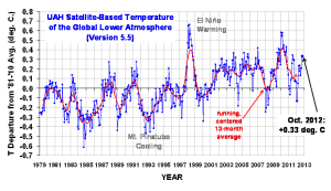 As you can see from the UAH graph (right), global temperatures are rising at a catastrophic rate. Or maybe not.