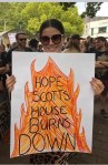 That lady (term used loosely) holding banner say “hope His house burns down “ only part of comments. She is smiling as if any one house burns down it is not a nice thing to happen to anybody she has to be a brainwashed brain dead nut case she must be sadistic . That is part of the reason I am not happy with these nut jobs everything is to be done there way and if not burn in hell no logic to there way of thinking. They must be all brain dead not to care for fellow humans to want to cause such damage to one life