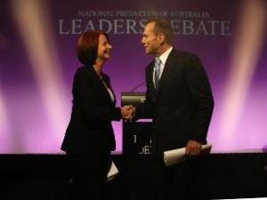 The leaders’ debate last night was a bit disappointing. Neither side landed any serious blows, but what came across more than anything was the stark contrast between the hyper-rehearsed sound-bite friendly spin of Julia Gillard and the more authentic, but less assured, honesty of Tony Abbott. Gillard is so like Rudd in the way she can speak for five minutes and not say anything – it’s quite uncanny. Her responses to questions on boat people showed she hasn’t a clue what she’s doing, and the climate issue didn’t get as much traction for Abbott as it should. But he made the very important point that the Coalition at least has a policy whereas Labor are just putting off announcing anything in the hope that the electorate will just vote her in anyway.